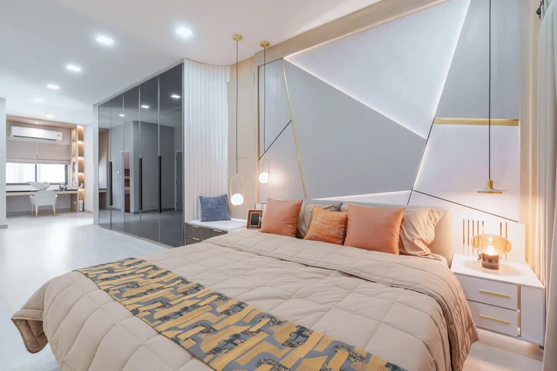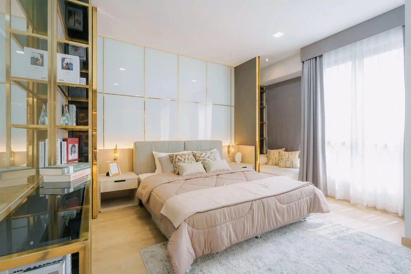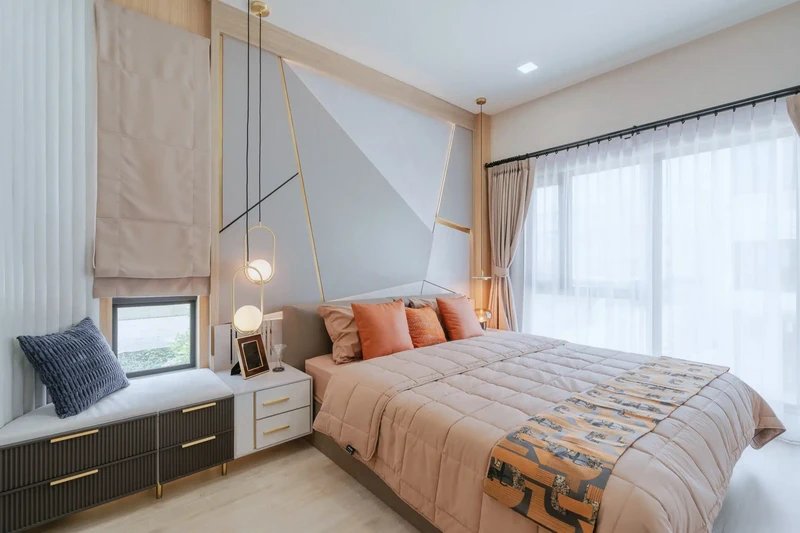 บรรยากาศภายในห้องนอนในแบบบ้านทาวน์โฮม 3.5 ชั้น