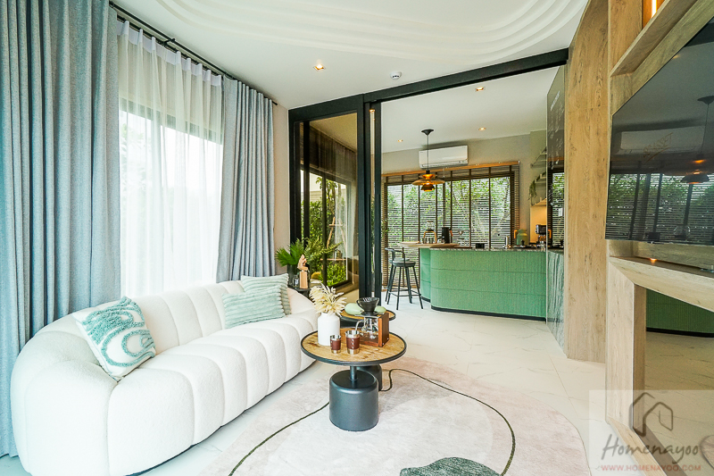 การออกแบบโครงการและตัวบ้าน : โครงการนี้มีทั้งหมด 249 ยูนิต บนที่ดินโครงการประมาณ 58 ไร่ ถือเป็นโครงการที่มีขนาดใหญ่พอสมควรค่ะ สำหรับจุดเด่นของบ้าน SC Asset คือการออกแบบบรรยากาศการอยู่อาศัยในแต่ละโครงการให้แตกต่างกัน ซึ่งจะเป็นจุดที่บอกความเป็นตัวตนของผู้อยู่อาศัยได้ โดยโครงการนี้จะได้ Mood ในการใช้ชีวิตที่ดูสนุกสนาน สดใส จากโทนสีและงานตกแต่งด้วยตัว Sculpture ฟลามิงโก้ ที่ได้รับแรงบันดาลใจจาก Las Vegas, USA ค่ะ
