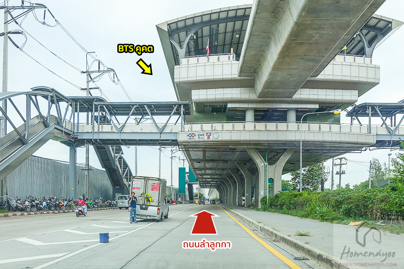 ลงจากทางยกระดับแล้วเราจะผ่าน BTS คูคต ซึ่งเป็นรถไฟฟ้าที่ใกล้โครงการที่สุดในขณะนี้