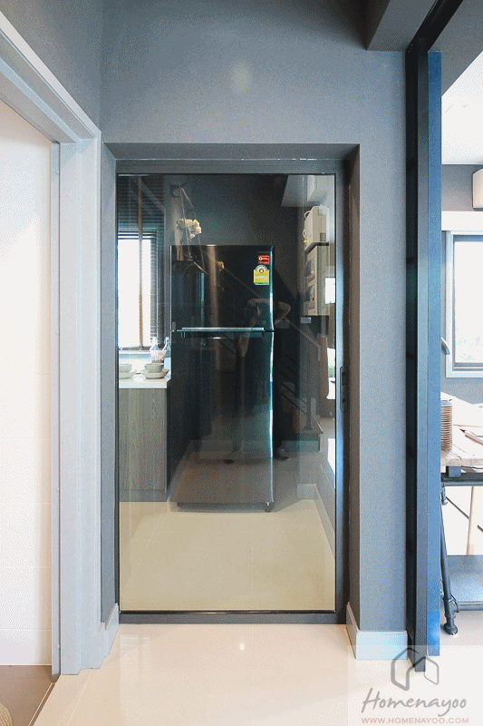 เข้ามาภายในห้องครัว ส่วนแรกถูกจัดเป็นห้องซักรีด อีกส่วนจะเป็นห้องครัวค่ะ ทางบ้านตัวอย่างได้ทำฉากกั้นระหว่างห้องเอาไว้