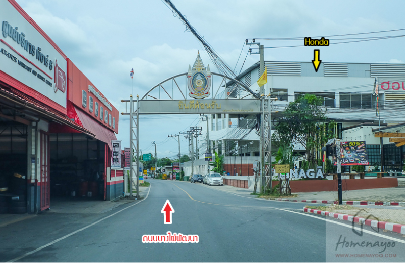 เลี้ยวเข้ามาจะเป็นถนนขนาด 2 เลน รถวิ่งสวนกันได้ ขวามือเป็นศูนย์ Honda