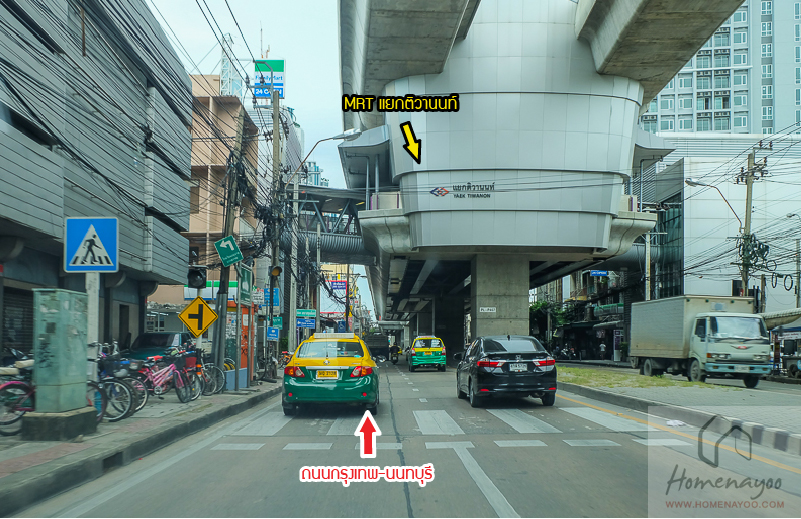 จากนั้นจะเป็น MRT แยกติวานนท์ ซึ่งเป็นสถานีที่อยู่ใกล้โครงการที่สุด ประมาณ 6 กม.