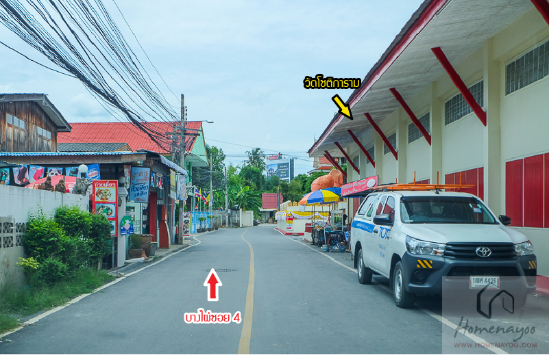 ขวามือจะเป็นวัดโชติการาม ซ้ายมือมีร้านอาหารตามสั่ง ก๋วยเตี๋ยว เดินจากโครงการมาได้ครับประมาณ 270 ม.