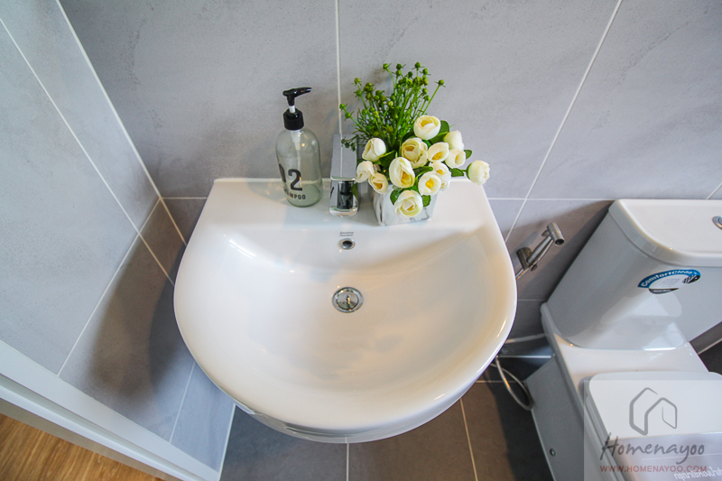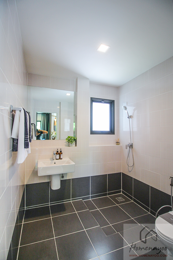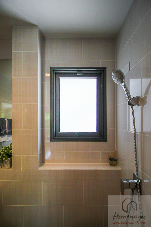 มีช่องแสงเป็นบานกระทุ้งเปิดระบายอากาศได้ ผนังทำ Low wall ไว้ให้วางอุปกรณ์อาบน้ำได้