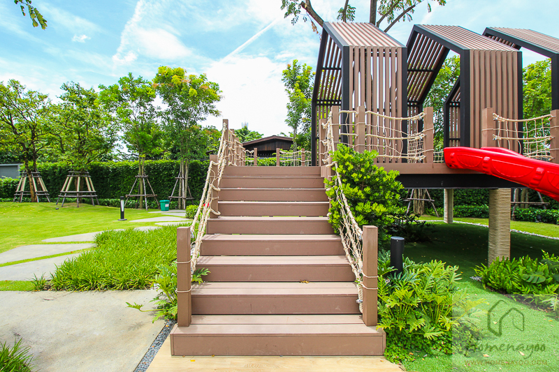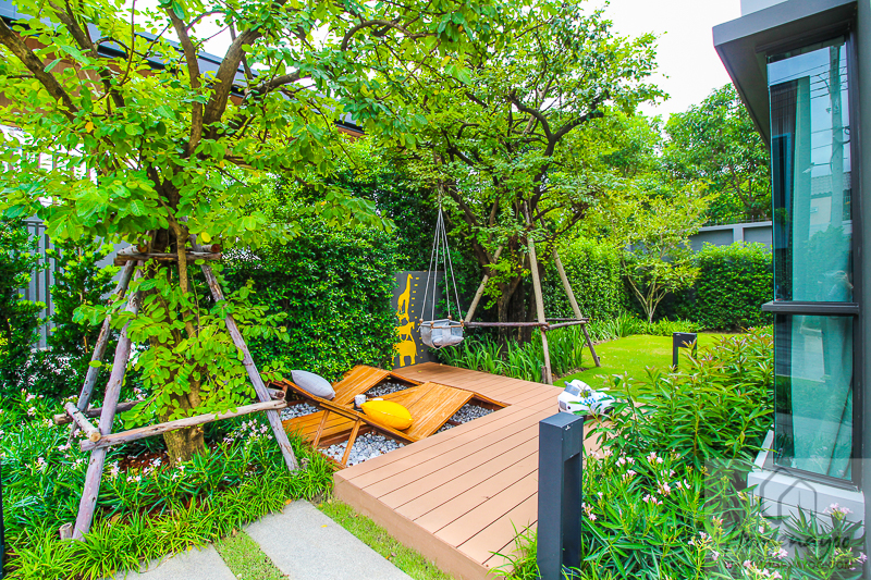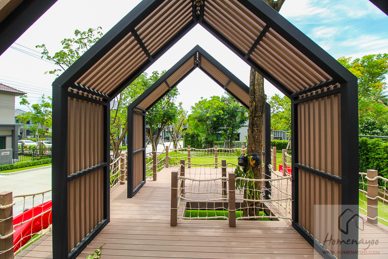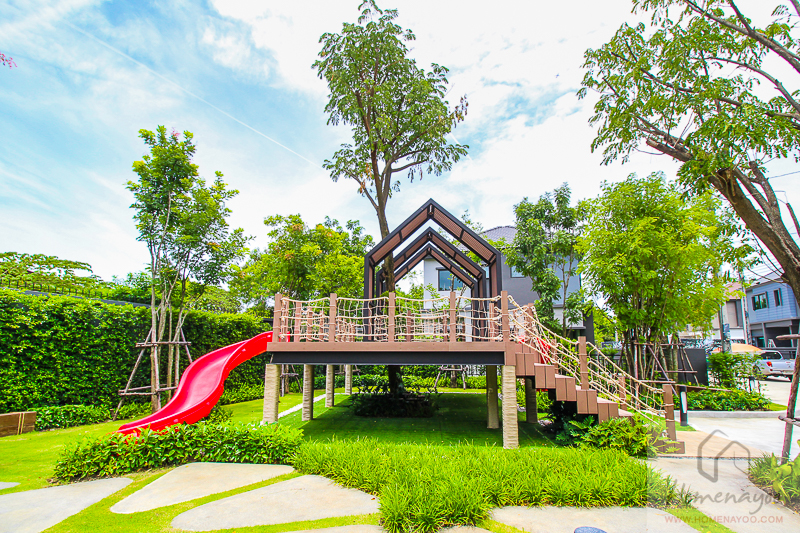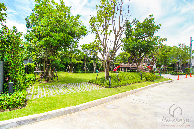 สาธารณูปโภค – Club House ส่วนกลางออกแบบมาได้สวยงามน่าใช้งาน เป็นอาคาร 2 ชั้น โดยที่ชั้นล่างจะเป็นสระว่ายน้ำขนาด 11.5 x 5 ม. พร้อมพื้นที่นั่งพักผ่อน มีห้องรับรอง ห้องน้ำและห้องอาบน้ำรองรับ แยกชาย-หญิงเป็นสัดส่วน ที่ชั้น 2 จะเป็นห้องนิติบุคคล ห้องฟิตเนส และห้องเด็กเล็ก มี Smart Locker เป็นตู้ฝากของอัจฉริยะที่มีไว้บริการเพื่อเพิ่มความสะดวกสบายให้กับลูกบ้านและง่ายในการฝากของ โดยเมื่อนำของมาฝากไว้ในตู้นี้ จะมีแอพพลิเคชั่นไว้สำหรับปลดล็อคได้ นอกจากนี้ยังมีสวนส่วนกลางมีทั้งไม้ใหญ่ ไม้พุ่ม และตกแต่งเป็นบ้านต้นไม้พร้อมสนามเด็กเล่น มีสนามหญ้าโล่งๆไว้ให้ทำกิจกรรมต่างๆได้ ถนนหลักกว้าง 10 ม. และถนนซอยกว้าง 9 ม.