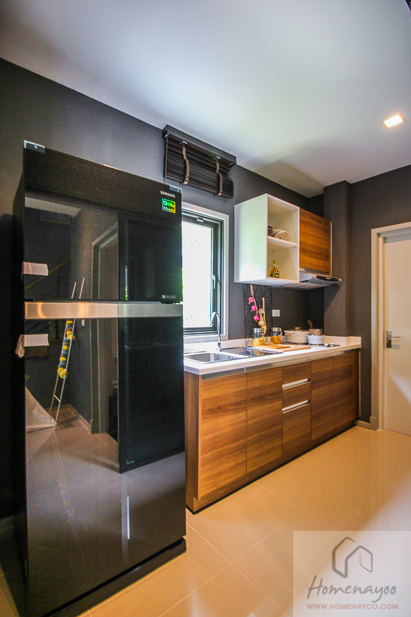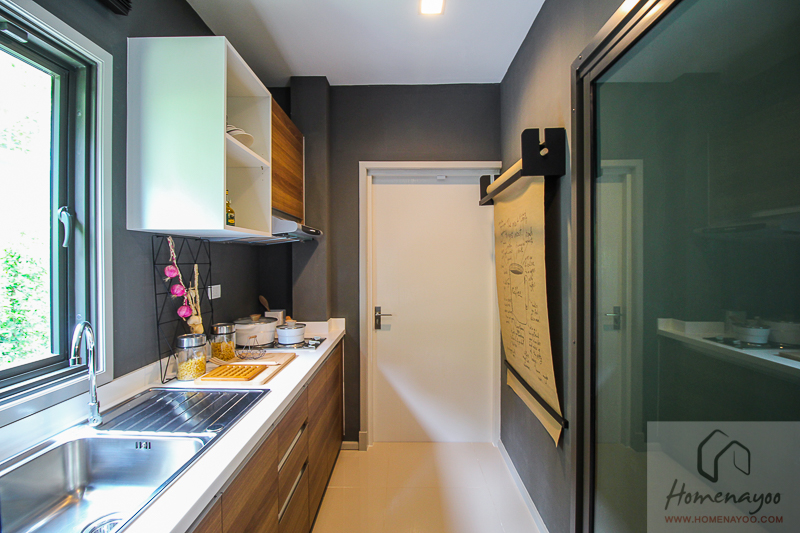 ติดกับห้องน้ำจะเป็นห้องครัว ได้เป็นครัวปิดมีประตูกระจกบานเลื่อนมาให้