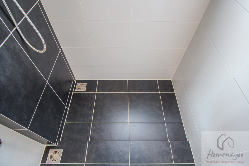 มุมด้านในเป็นพื้นที่ส่วนเปียก ที่ผนังติดฝักบัวมาให้