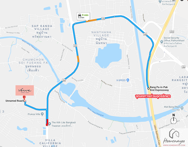 สรุปการเดินทาง ถนนแจ้งวัฒนะ > ห้าแยกปากเกร็ด > ถนนติวานนท์ > โครงการ Verve ติวานนท์ – รังสิต
