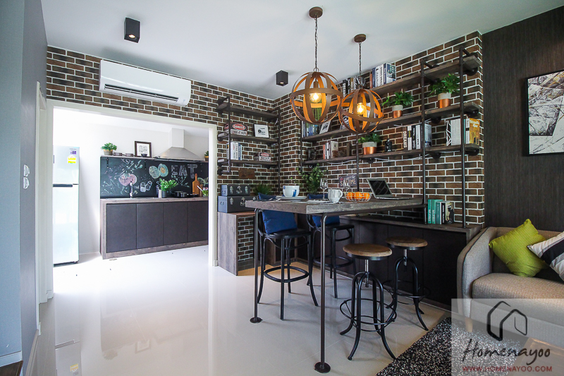 พื้นที่ในส่วนห้องทานอาหารถือว่ากว้างพอสมควรเลยค่ะ สามารถที่จะวางโต๊ะทานอาหารขนาด 4 – 6 ที่นั่งได้สบายๆ