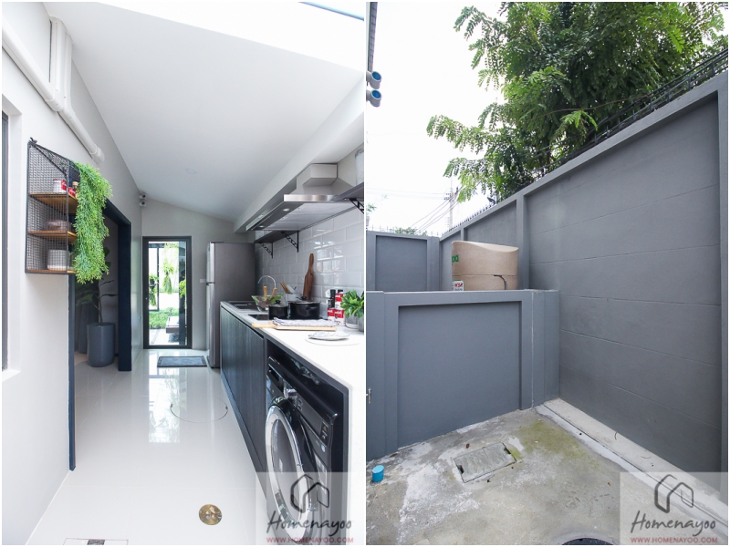 สำหรับบ้านตัวอย่างแบบนี้ก็จะต่อเติมมาให้เป็นห้องครัวและห้องซัดรีดเช่นกันค่ะ