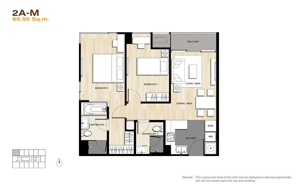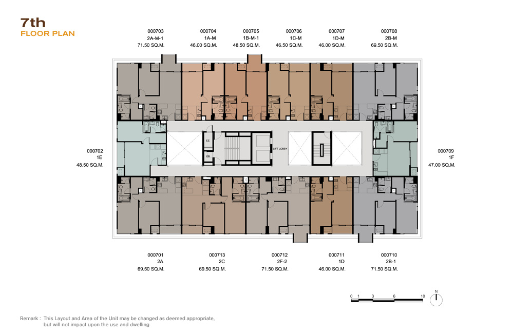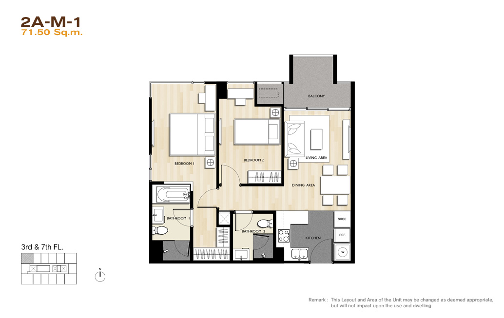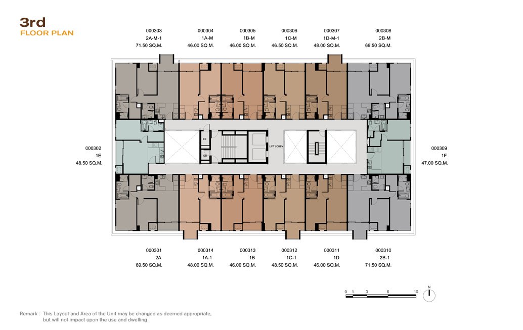 | ลักษณะห้องและขนาดห้อง | – 1 Bed / 46-48.50 ตร.ม. – 2 Bed / 69.50-71.50 ตร.ม. – 3 Bed / 124.50-125.50 ตร.ม. |