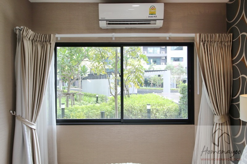 ปิดผ้าม่านโปร่งให้ดูค่ะ…ภายในห้องก็จะได้แสงจากธรรมชาติ แต่ไม่ร้อน สำหรับคนที่ซื้อ-โอนภายในปีนี้ ทางโครงการจะแถมผ้าม่านเพิ่มเข้าไปให้ด้วยนะ