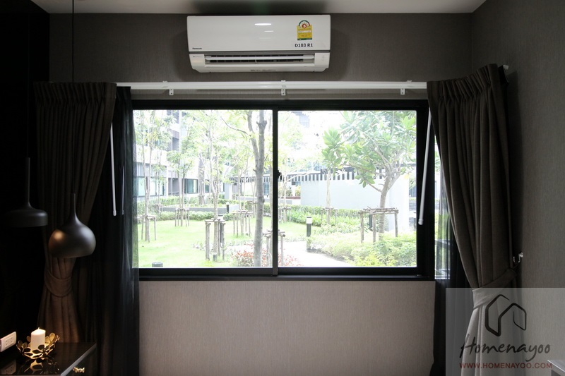 มีเคาน์เตอร์ครัว + ซิงค์ล้างจาน, สุขภัณฑ์ในห้องน้ำของ American Standard พื้นห้องปูไม้ลามิเนต, พื้นระเบียงปูกระเบื้องเซรามิค 30 × 30 ซม. ผนังห้องและฝ้าเพดานฉาบเรียบทาสีพื้น ไฟภายในห้องแบบโคมทรงกลม รวมถึงจะได้ระบบ Bluetooth Sound System ติดตั้งเอาไว้ให้ด้วย