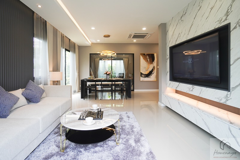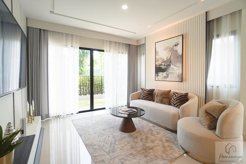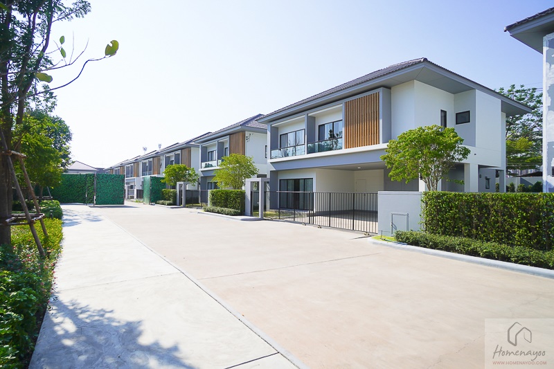 ส่วนตัวบ้านมีการออกแบบที่ดี รูปลักษณ์ภายนอกดูทันสมัย มีที่จอดรถให้เยอะ ภายในดูโปร่งโล่ง กว้างขวาง อยู่สบาย ตัวบ้านมีหน้าต่างเยอะ จึงสามารถรับแสงธรรมชาติได้เพียงพอ สามารถจัดเฟอร์นิเจอร์ได้ง่าย เพราะโครงการมีการออกแบบพื้นที่ใช้สอยมาลงตัว ซึ่งบ้านของโครงการจะเน้นห้องอเนกประสงค์ เพื่อรองรับไลฟ์สไตล์ต่าง ๆ ของสมาชิกในครอบครัว เรียกว่าเป็นฟังก์ชันที่บ้านยุคใหม่ควรจะมี มาพร้อมกับการเดินสายไฟรองรับระบบ EV Charger, Smart Switch, Smart Mirror และโถสุขภัณฑ์แบบอัตโนมัติ ทำให้บ้านลงตัวไปอีกระดับค่ะ