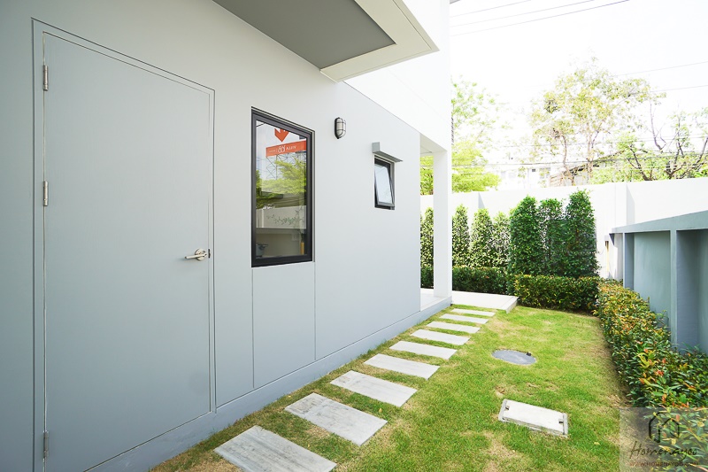 โดยจากที่จอดรถจะมีประตูทางเข้าบ้านรอง เพื่อความสะดวกสบายเวลาฝนตก หรือวันที่ซื้อของเข้าบ้าน ก็สามารถยกของเข้าบ้านตรงเข้าห้องครัวได้เลย