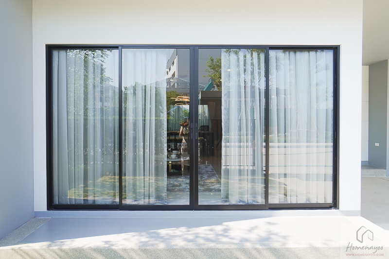 ประตูทางเข้าบ้านใช้ชุดบานเลื่อนอะลูมิเนียมขนาดใหญ่