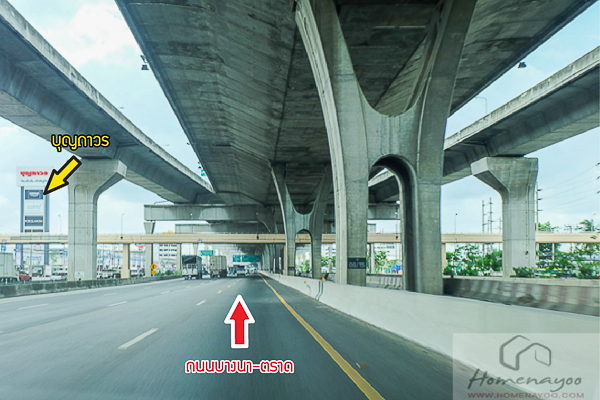 เริ่มจากถนนบางนาตราดมุ่งหน้าชลบุรี ซ้ายมือจะเจอ Bangkok Mall ห้างสรรพสินค้าแห่งใหม่ย่านบางนา ขวามือจะเห็นทางด่วนบูรพาวิถี