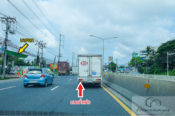 เลี้ยวซ้ายมาจะเป็นถนนกิ่งแก้ว ขับตรงไปครับ