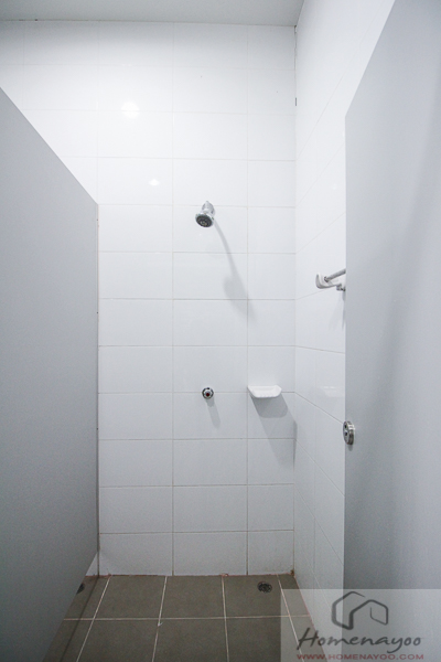 ด้านในติดฝักบัว มีช่องวางอุปกรณ์อาบน้ำมาให้