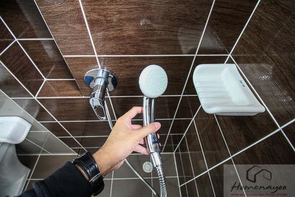 ติดฝักบัวมาให้ มีช่องสำหรับวางอุปกรณ์อาบน้ำ 2 ช่อง