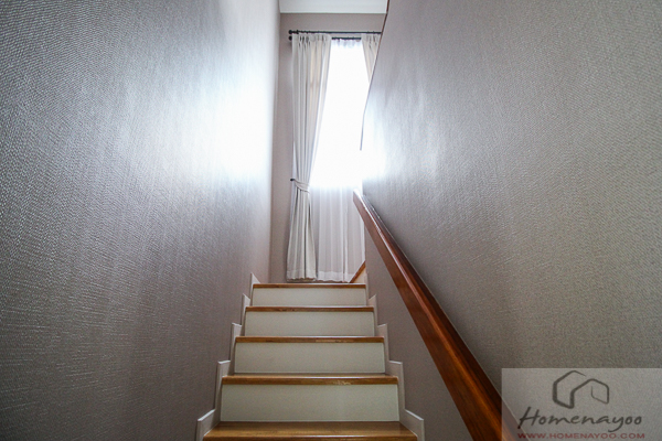 ออกมาตรงชานบันได มองขึ้นไปที่ชั้นสองจะมีบันไดขึ้นไปอีก ซ้ายมือเป็นห้องนอน 2 และขวามือเป็น Master Bedroom ตรงกลางเป็นห้องน้ำ