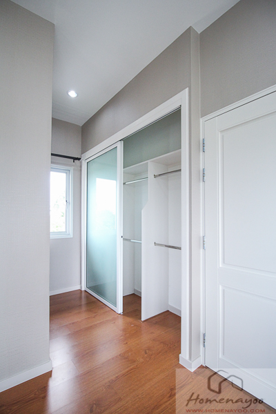 กลับเข้ามาด้านในกันต่อ ประตูส่วน Walk in closet เป็นบานกระจกวงกบไม้