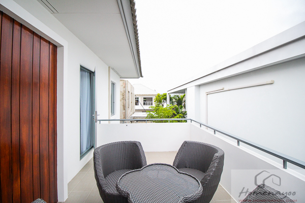 มีประตูออกไปยังระเบียงเป็นกระจกบานเลื่อน 2 บาน