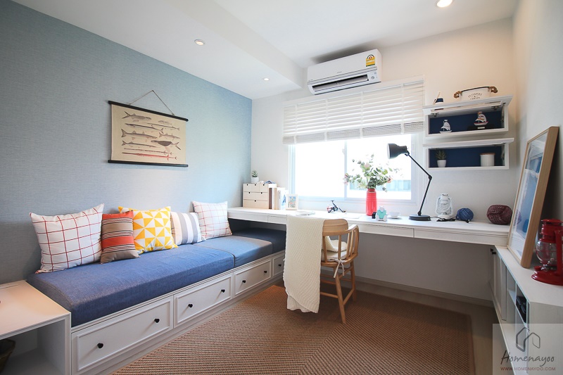 แม้จะบอกว่าเป็นห้องนอนเล็กของบ้าน แต่จริงๆ แล้วก็ได้พื้นที่ใช้สอยค่อนข้างใหญ่เหมือนกันนะคะเพราะมีความยาวเท่ากับหน้าบ้านเหมือนกัน