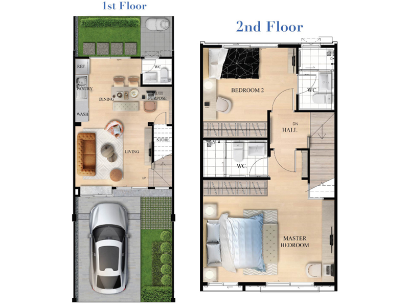 ฟังก์ชันบ้านตอบโจทย์คุณภาพชีวิตใหม่ด้วยขนาด 2-3 ห้องนอน, 3 ห้องน้ำ, 1 ห้องพักผ่อน พร้อมที่จอดรถ 1-2 คัน ท่ามกลางบรรยากาศโครงการที่เงียบสงบ แต่ละซอยมีจำนวนหลังน้อยทำให้ได้ความเป็นส่วนตัวสูง บ้านสมาร์ทสร้างเสร็จก่อนขายที่ถูกออกแบบมาให้ตรงตามความต้องการและการใช้ชีวิต