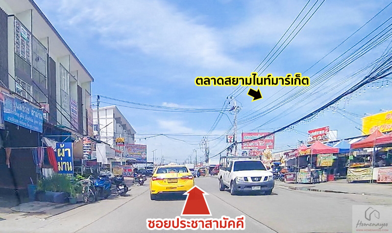 ขับตามทางไปเรื่อย ๆ บนซอยประชาสามัคคี ผ่านตลาดมารวยทางฝั่งซ้าย