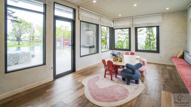 เอาใจเด็ก ๆ ด้วย Kids Room มีห้องน้ำส่วนกลางแยกชาย-หญิงและสำหรับผู้ใช้วีลแชร์ สวนสาธารณะขนาดใหญ่พร้อมสนามเด็กเล่นและม้านั่งพักผ่อนในสวน ถนนเมนโครงการกว้าง 16 ม. ส่วนถนนซอยกว้าง 8 ม. รั้วโครงการมีมาตรฐานสูง 3.6 ม. มีฟุตบาทสำหรับลูกบ้านที่เดินเท้า