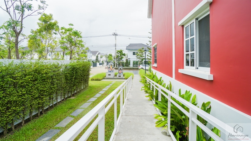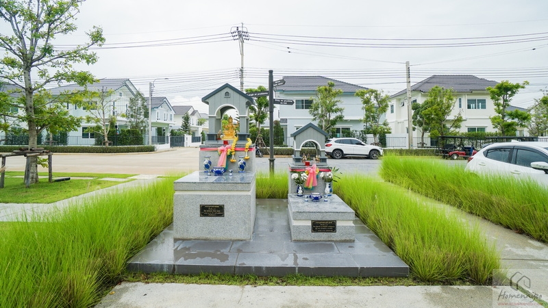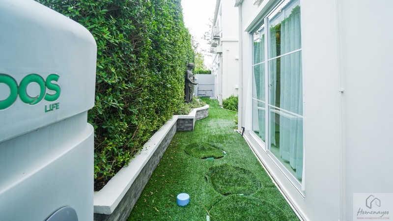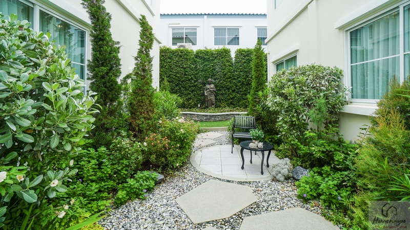 จัดสวนร่มรื่นตามหลักภูมิสถาปัตย์ภายในบ้านพร้อมเข้าอยู่อาศัย หน้าบ้านมีถังขยะที่ออกแบบพิเศษเป็นส่วนเดียวกับรั้วบ้าน ตู้จดหมายติดตั้งในตำแหน่งที่สะดวกต่อการใช้งาน มีระบบกำจัดปลวก ส่วนภายในห้องน้ำมีการติดตั้งฉากกั้นแยกส่วนแห้งส่วนเปียกชัดเจน มีช่องระบายอากาศพร้อมดีไซน์ลายกระเบื้องผนังสวยงาม