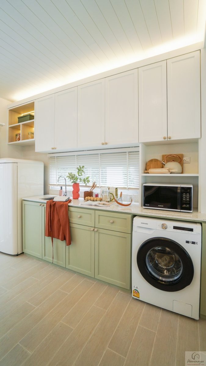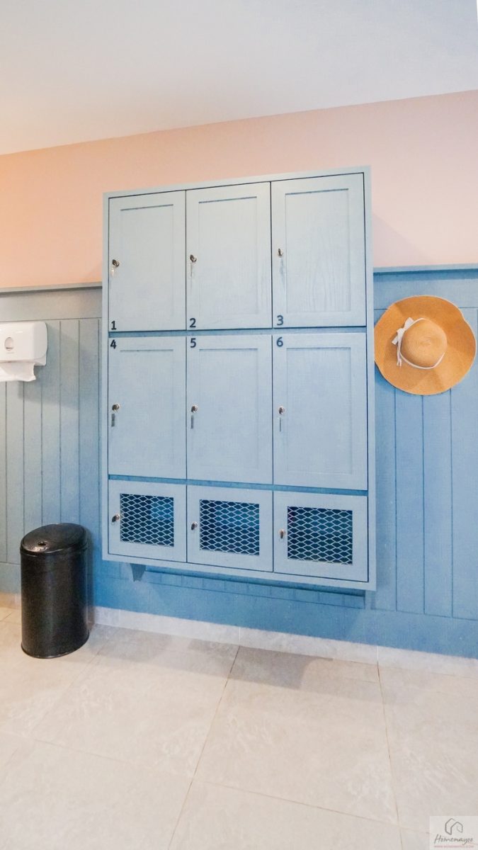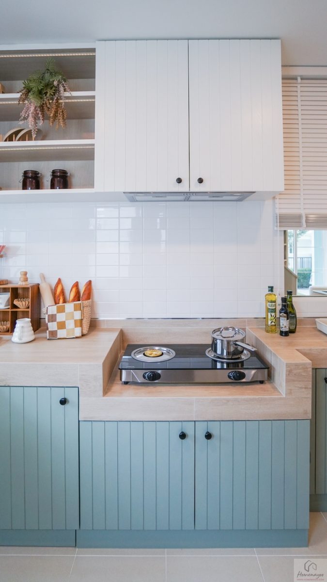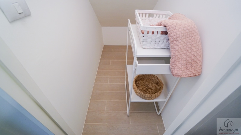 ด้านข้าง Built-in เป็นตู้เก็บของบานปิดกับชั้นวางของสวย ๆ