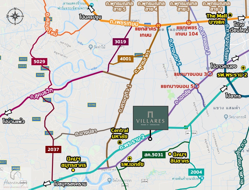 ทำเลที่ตั้ง โครงการ Villares พระราม 2-เอกชัย ตั้งอยู่บนถนนเอกชัยฝั่งขาออก โดยจะอยู่เลยมาจากแยกเอกชัย-พระราม 2 ประมาณ 1.6 กม. เป็นพื้นที่ระหว่างนิคมอุตสาหกรรมสินสาครและสมุทรสาคร ซึ่งถือว่าเป็นทำเลทองใจกลางเมืองสมุทรสาคร หรือใจกลางมหาชัยเลยค่ะ เพราะสามารถเดินทางได้สะดวกสบาย โดยโครงการจะอยู่ติดถนนใหญ่ เดินทางเชื่อมต่อถนนพระราม 2 เพื่อเข้า-ออกเมืองได้ไม่ยาก และจุดแข็งก็คือ ในอนาคตจะมีทางด่วนกรุงเทพ-วังมะนาวตัดผ่าน ซึ่งจุดขึ้น-ลงทางด่วนจะอยู่ใกล้กับโครงการอีกด้วยค่ะ