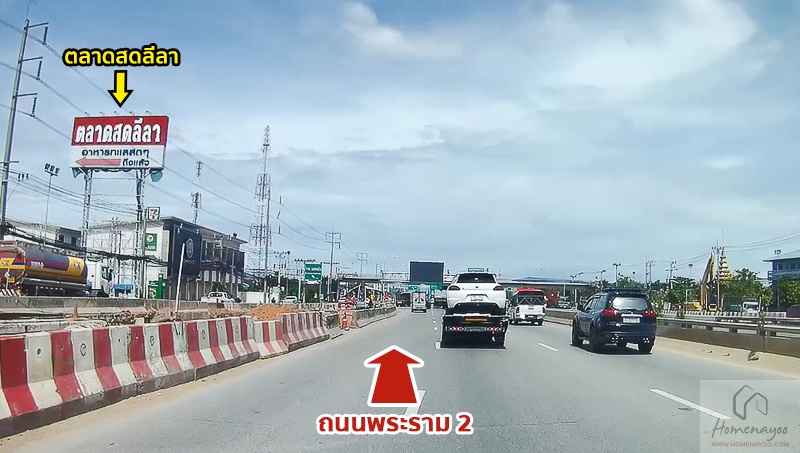 พอผ่านตลาดสดลีลามาแล้ว ให้เราชิดซ้ายเพื่อออกทางคู่ขนาน