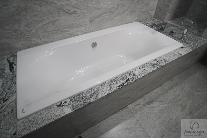 และแน่นอนว่าต้องมีอ่างอาบน้ำมาให้ด้วยเช่นกัน โดยจะเป็นขนาดอ่างที่นอนแช่ได้ 1 คนพอดีค่ะ