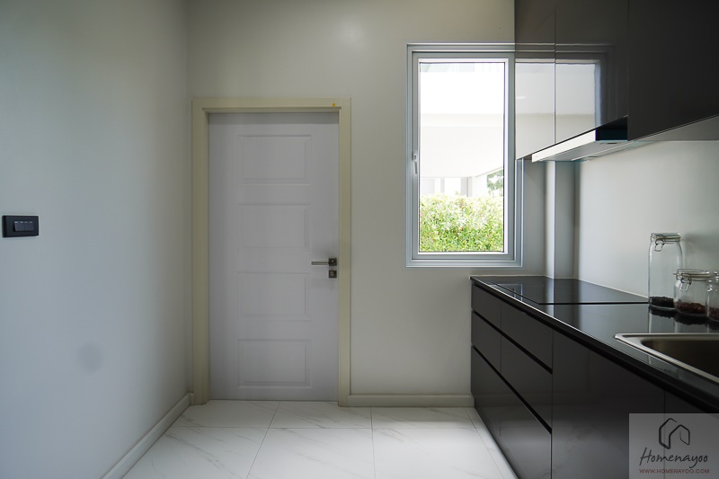 ซึ่งแบบบ้านของโครงการไม่ว่าจะเป็นไซซ์เล็กหรือใหญ่ ก็มีการออกแบบพื้นที่ของแต่ฟังก์ชันให้มีขนาดใหญ่ เพราะไม่ได้อัดฟังก์ชันเข้าไปภายในบ้านเยอะจนเกินไป จึงทำให้ได้พื้นที่ใช้สอยที่ใช้งานได้จริง และใช้งานได้สะดวกด้วย โดยมีฟังก์ชัน Mudroom เพิ่มขึ้นมาแตกต่างจากบ้านจัดสรรทั่ว ๆ ไป ที่ตอบโจทย์ทั้งวิถีชีวิตแบบ New Normal เพิ่มทั้งความสะดวกสบายและความ Hygiene นับว่าโครงการมีไอเดียในการออกแบบบ้านที่ดีพอสมควรเลยค่ะ