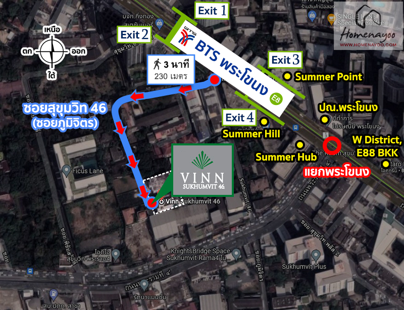 ซึ่งโครงการจะห่างจากรถไฟฟ้าสายสุขุมวิท BTS พระโขนง ทางออก 4 ระยะทางประมาณ 230 เมตร* ทางออกนี้จะอยู่ติดกับ Summer Hill และซอยสุขุมวิท 46 เลยค่ะ