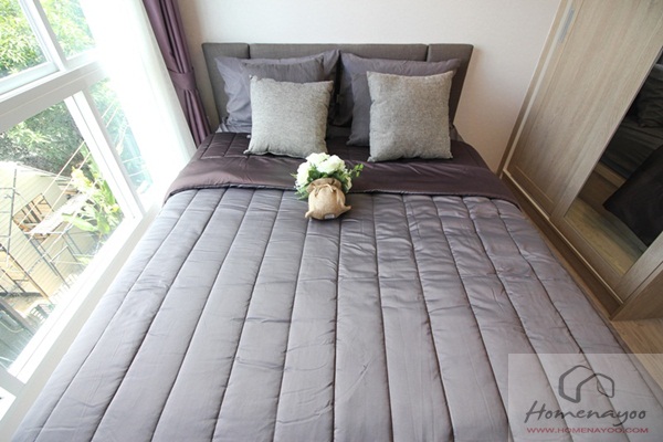 ภายในห้องนอนเล็กนี้ได้เตียงขนาดเท่ากับห้อง Master ค่ะ เป็นเตียง QueenSize ขนาดห้องนอนเท่าๆกับห้อง One Bed เลย มีตู้เสื้อผ้าให้เหมือนกัน