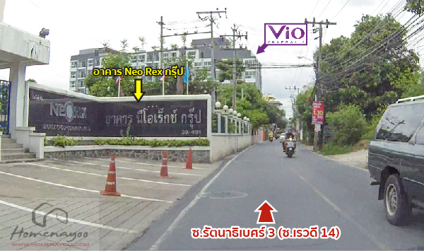 ก่อนถึงโครงการ ก็จะเจอกับอาคารสำนักงาน บริษัท Neo Rex Group ด้านซ้ายมือ