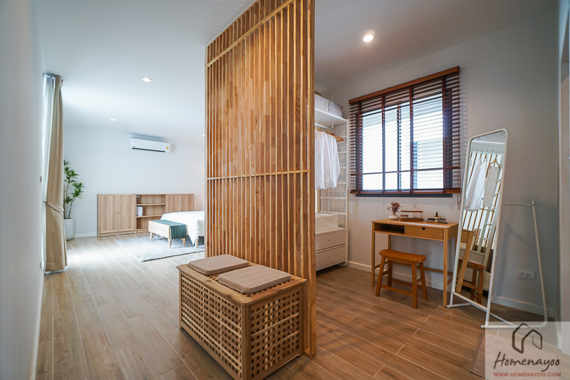ตัวอย่างที่กั้นมาด้านในมีขนาดกำลังดี ได้แสงธรรมชาติทั้งจากหน้าต่างในส่วนห้องแต่งตัว และการใช้ระแนงก็ทำให้ได้ความโปร่งและแสงธรรมชาติจากในส่วนห้องนอนด้วย