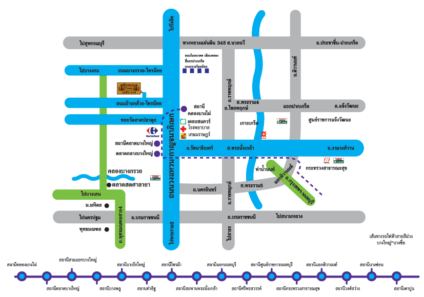 | ขนส่งสาธารณะ | รถไฟฟ้าสายสีม่วง (สถานีคลองบางไผ่) |