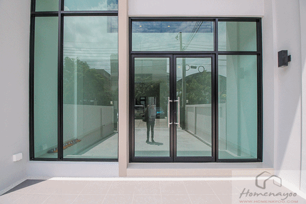ฝั่งด้านนอกมีประตูและหน้าต่างบานเลื่อน