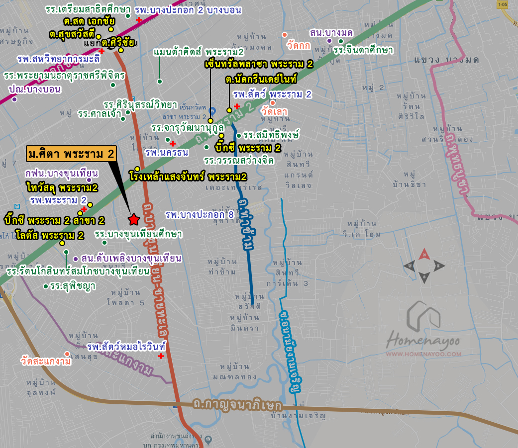 | สถานที่สำคัญใกล้เคียง | – ห้างสรรพสินค้า : เซ็นทรัลพระราม 2, บิ๊กซี, คาร์ฟูร์, โลตัส, โฮมโปร – โรงพยาบาล : โรงพยาบาลนครธน, โรงพยาบาลบางปะกอก 9 อินเตอร์เนชั่นแนล – สถานศึกษา : โรงเรียนรุ่งอรุณ, โรงเรียนจารุวัฒนานุกูล, มหาวิทยาลัยเทคโนโลยีพระจอมเกล้าธนบุรี ถนนประชาอุทิศ, โรงเรียนสารสาสน์ บางบอน, มหาวิทยาลัยเทคโนโลยีพระจอมเกล้าธนบุรี – ร้านอาหาร : ร้านอาหารบ้านพลอย – Sport Club : Center One Sport Club ศูนย์ออกกำลังกาย |